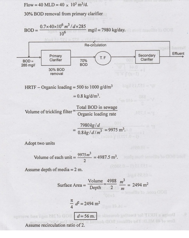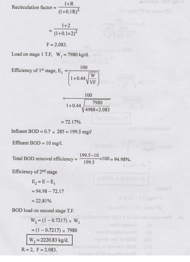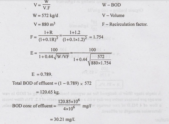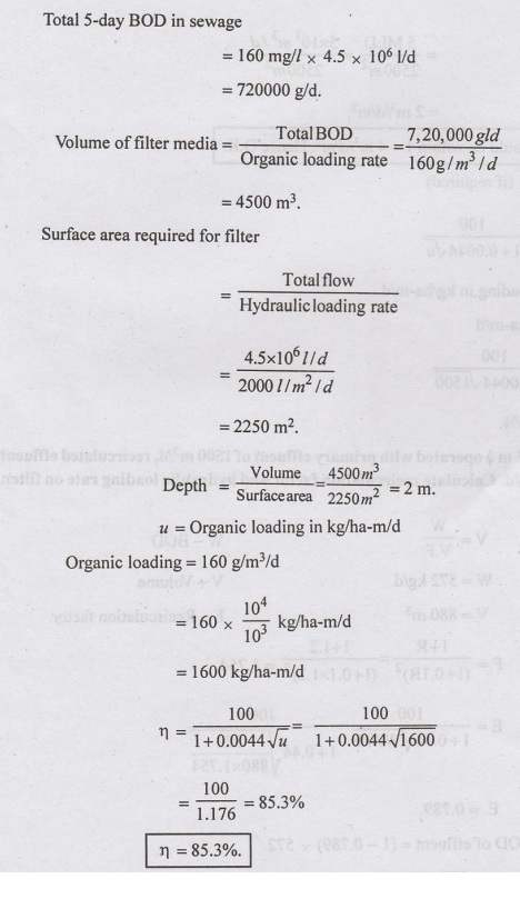 Water Supply And Wastewater Engineering: Unit V: Sewage Treatment And Disposal : Tag: : Sewage Treatment and Disposal - Example Solved Problems on Trickling Filters