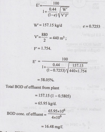 million litres of sewage per day. The BOD of sewage is 150 mg/l.