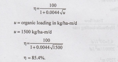 for an organic loading of 1000 kg of BOD in raw sewage per hectare metre per