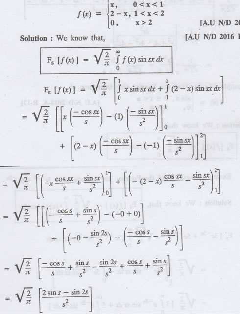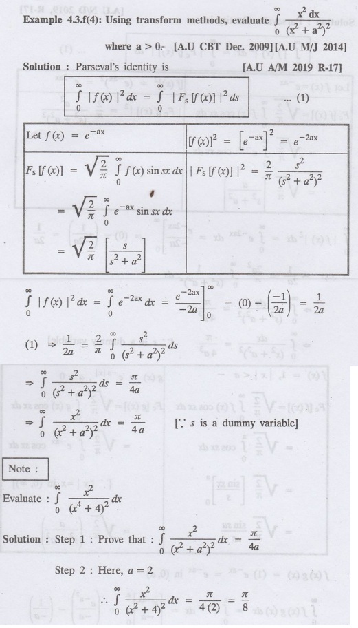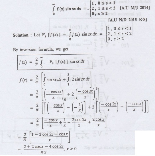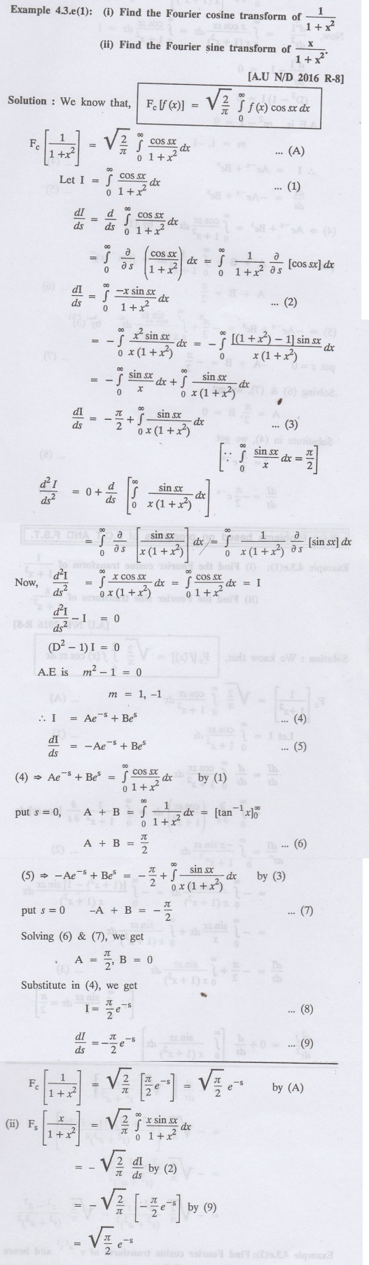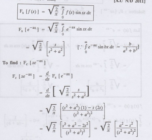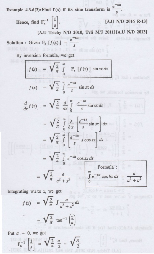 Transforms And Partial Differential Equations: UNIT IV: Fourier Transforms : Tag: : Examples - Fourier Sine & Cosine Transforms
