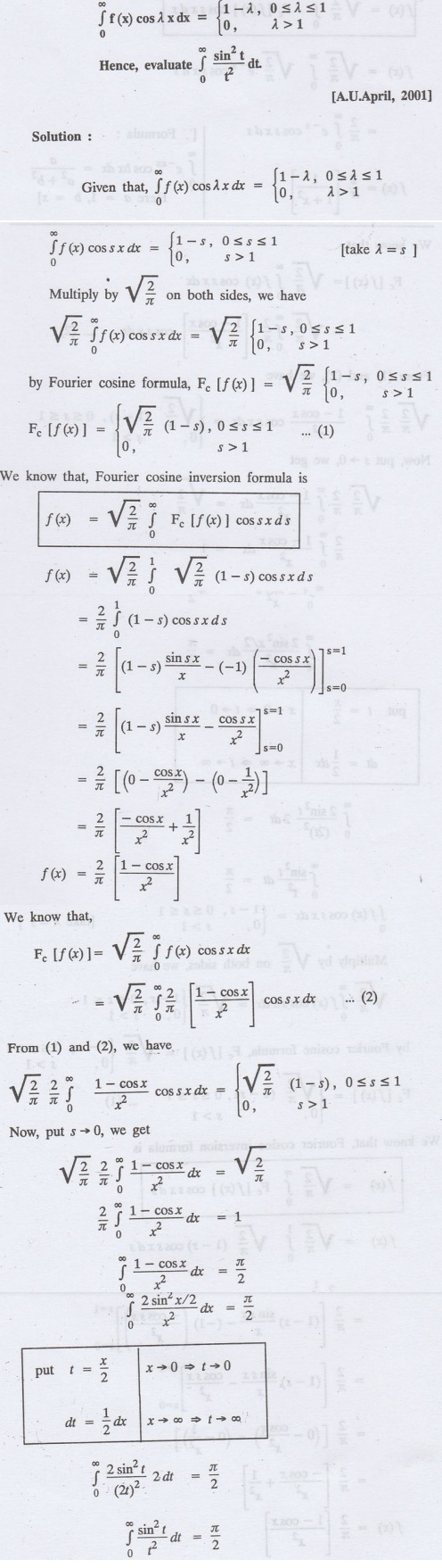 (b) Problems based on Fourier cosine transform and its inversion formula.