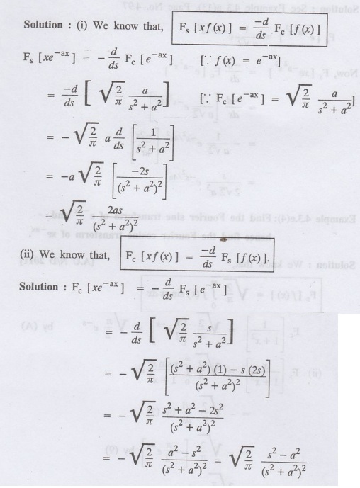 Example 4.3.e(4): Find the Fourier sine transform of e-ax hence find the Fourier cosine transform of xe-ax