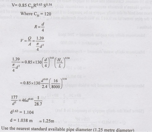 Weisbach formula as well as by using Hazen's formula assuming a maximum daily