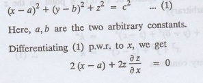 Example 1.1(a) (13): Obtain partial differential equation by eliminating arbitrary constants a and b from (x − a)2 + (y - b)2 + z2 = 1.