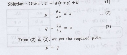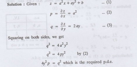 1.1a(4) : Form a p.d.e by eliminating the arbitrary constants a and b from z =