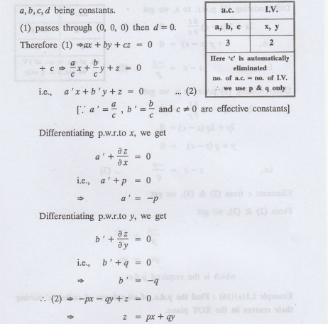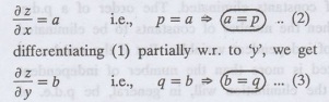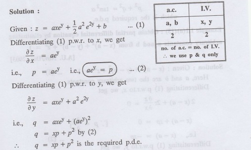 Example 1.1(a) (11) : Form the p.d.e. by eliminating the arbitrary constants a & b from z = axey + 1/2 a2 e2y + b.