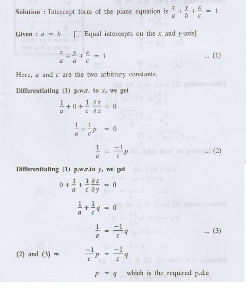1.1(a) (17) Find the PDE of all planes having equal intercepts on the x and y