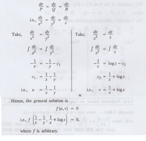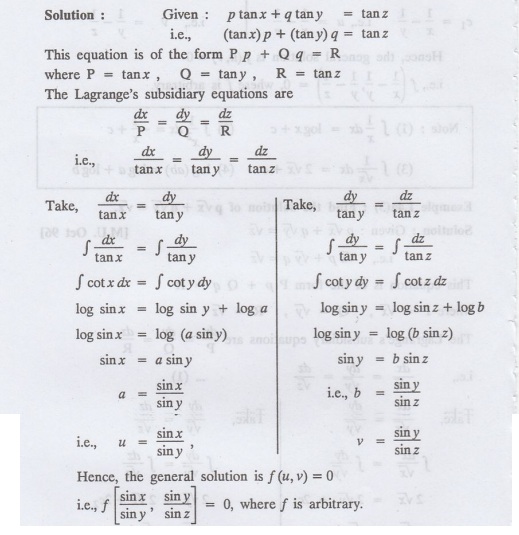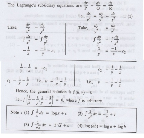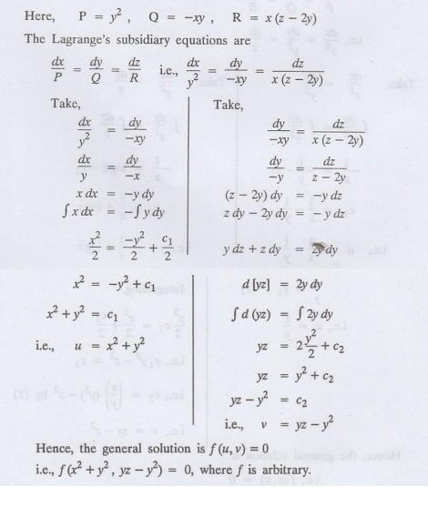Transforms And Partial Differential Equations: UNIT I: Partial Differential Equations : Tag: : Examples - Problems based on Lagrange's linear equation method of Grouping