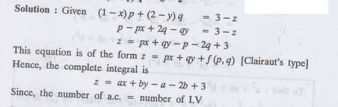 Example 1.3b(16) : : Find the complete integral of the partial differential equation (1-x) p + (2-y)q = 3-z